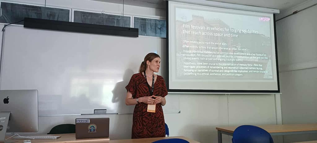 Hosted by the wonderfully labyrinthine campus of Lusófona University in Lisbon, the conference featured a number of parallel panels throughout the vast university grounds, which meant our team was at first tasked with discovering the complexities of finding their classroom. When they finally navigated through the city and all the buildings – shout-out to the nice people in front of the Veterinary Faculty for directions – they successfully presented their findings on regional film festivals as sites of memory work at a panel titled “Film Festivals in the Post-Yugoslav Space as Spaces of Memory Discovery, Navigation, and Migration”, moderated by the wonderful scholar Jaka Primorac.