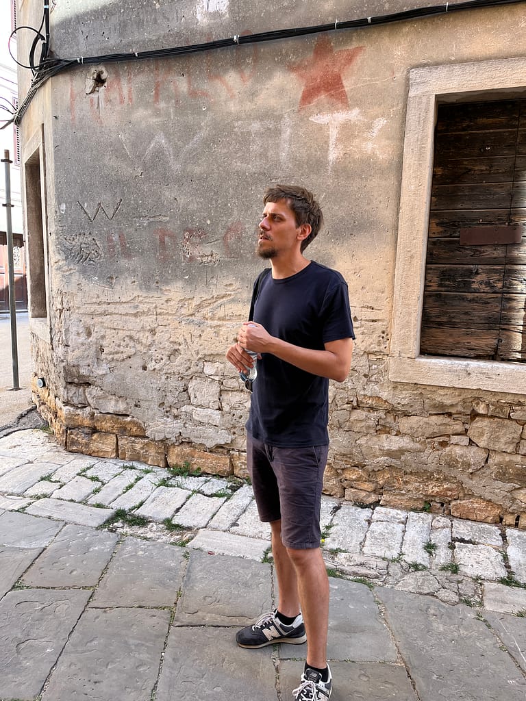 On 13 August 2025, MEMPOP researcher Eric Ušić led a dynamic cultural history tour through Vodnjan, using the town’s uniquely preserved graffitiscape as the inspiration for discussing Istria’s multilayered past, fluid identities, language policies, and contemporary understandings of antifascism. Tour participants had the chance to explore this unique heritage up close and, by deciphering the texts, uncover the intricate story of Istria’s 20th century, learning about key events and protagonists of the region’s antifascist past and the complex postwar reality.