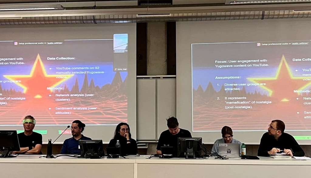The RiMEMPOP panel followed, showcasing presentations on themes ranging from rap as a vehicle for solidarity and resistance, to political graffiti both within and beyond Ukraine, the cultural politics of Yugowave, queer film festivals on Europe’s periphery, and Serbian youth attitudes toward Kosovo. The session concluded with an online presentation of the Rebellious Ljubljana map. Taken together, the presentations highlighted how memory is continually reconfigured through visual, sonic, and digital media.