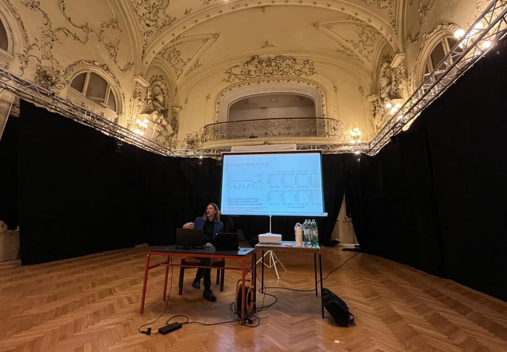 The second day of the workshop turned to methodological challenges posed by Large Language Models (LLMs), addressing topics like benchmark criteria (e.g., Massive Multitask Language Understanding) and the emergent properties of AI. Ironically, the Biedermeier-like interior of Filodrammatica Theatre hosted lively discussions about the value and limitations of LLMs in cultural research. As a hands-on complement, participants were introduced to Orange Data Mining software, with sentiment analysis proposed as a gateway into exploratory work with popular culture datasets.