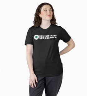 The images of Srebrenica and its symbols, dates and slogans, are so central in urban geography that they become objects of appropriation not only by victims’ families or activists, but also by anyone who sets foot in this city: tourists, the curious, cultural practitioners, even merchants. They wear T-shirts, collect symbols, and proudly pin the white-petaled flower. At first glance, these gestures can resemble tourist practices, a kind of consumer-friendly memorabilia that risk turning remembrance into ritualized repetitions. I must confess that I have sometimes perceived them in this way: as curated yet fragile attempts at solidarity that may not withstand the weight of the past they claim to honor.