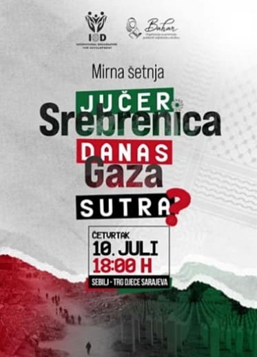 Human solidarity is also expressed toward victims of more recent massacres, often juxtaposed with the Bosnian one. The commitment of memory is also a story of interethnic, intergenerational, and international legacy, born from understanding, first and foremost, the universality of suffering and the necessity of justice. “Jučer Srebrenica, danas Gaza, sutra?” (Yesterday Srebrenica, today Gaza, tomorrow?) read the flyers posted everywhere in Baščaršija. Since 2023, these annual calls to action have drawn a direct parallel between the genocide of Srebrenica and what is described as an ongoing genocide in Gaza, invoking the memory of one to call attention to the other. These appeals extend the relevance of the past into the present, shaping a sense of justice, belonging, and responsibility that connects Sarajevo’s local memory to broader global struggles.