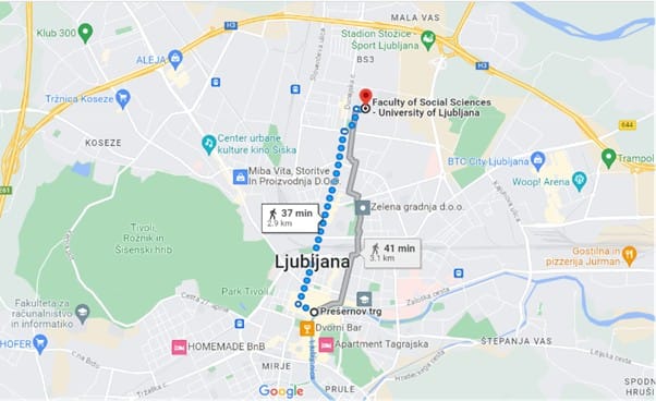 We recommend taking the public bus to the venue. Buses 6, 8, and 11 will take you to the Mercator bus stop, which is a short walk from the Faculty of Social Sciences.